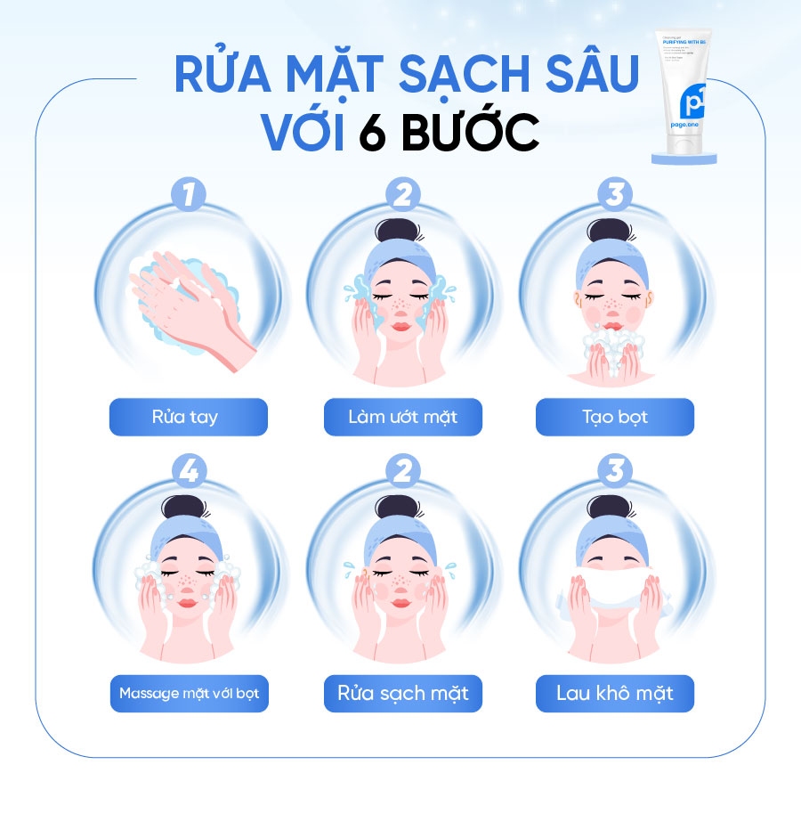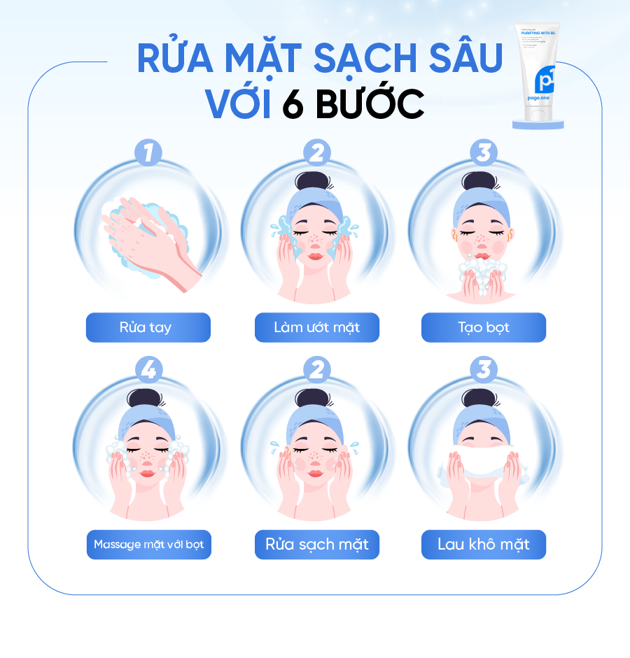 Để có một làn da sạch sâu và khỏe mạnh, việc thực hiện quy trình rửa mặt đúng cách là rất quan trọng. Dưới đây là 6 bước hướng dẫn rửa mặt sạch sâu hiệu quả với Page One Cleansing Gel Purifying With B5, giúp bạn đạt được làn da sạch sâu và khỏe khoắn.