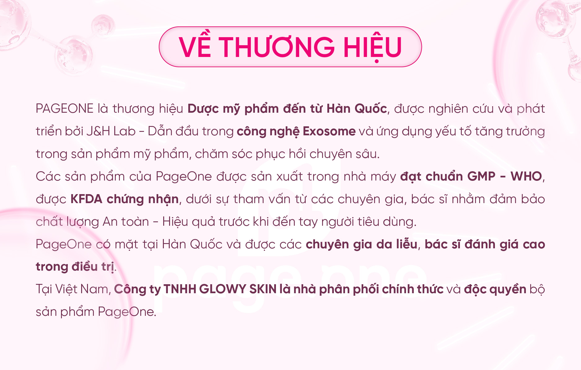 Serum PageOne Tranacide Pro + Exosome là dòng sản phẩm serum điều trị các tình trạng da thâm, sạm, nám được nghiên cứu theo công nghệ tiên tiến chứa bộ ba công thức tranexamic acid, niacinamide, arpha abuitin giúp giải quyết các vấn đề về da như da không đều màu, thâm sạm.